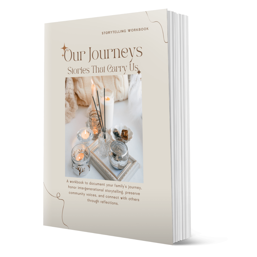 Our Journeys: Stories That Carry Us is a storytelling workbook designed to help you explore, capture, and preserve your family’s stories. Storytelling keeps our heritage alive and strengthens the bonds across generations. Remember, there is no right or wrong way to tell a story—your voice is enough.